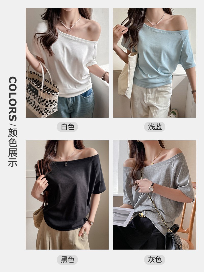 Carefully selected white modal one-shoulder short-sleeved T-shirt women’s new summer sweet and spicy loose versatile off-the-shoulder top