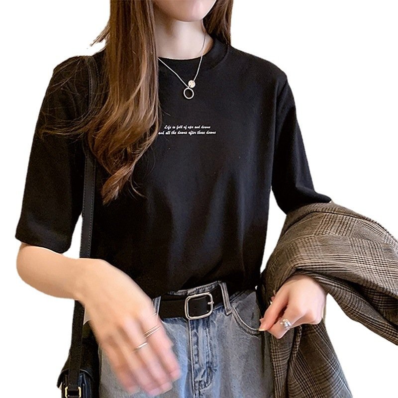 2026 Summer New Korean Loose Letter Print Short Sleeve T-Shirt Female Student Clothes Women’s Clothing One Drop Shipping