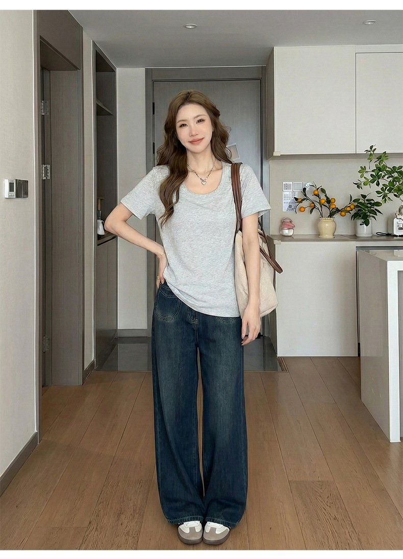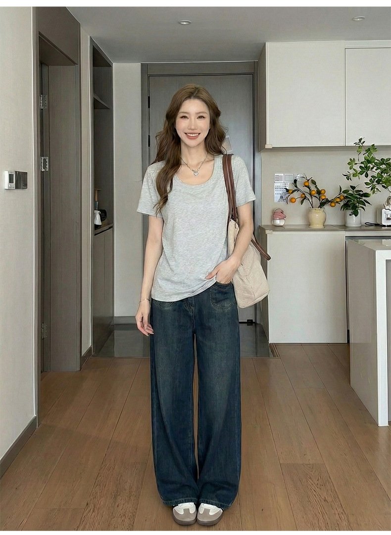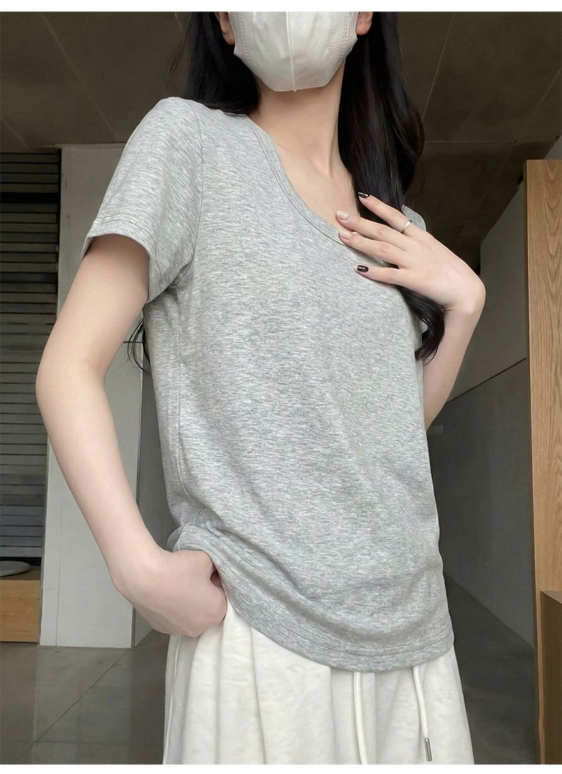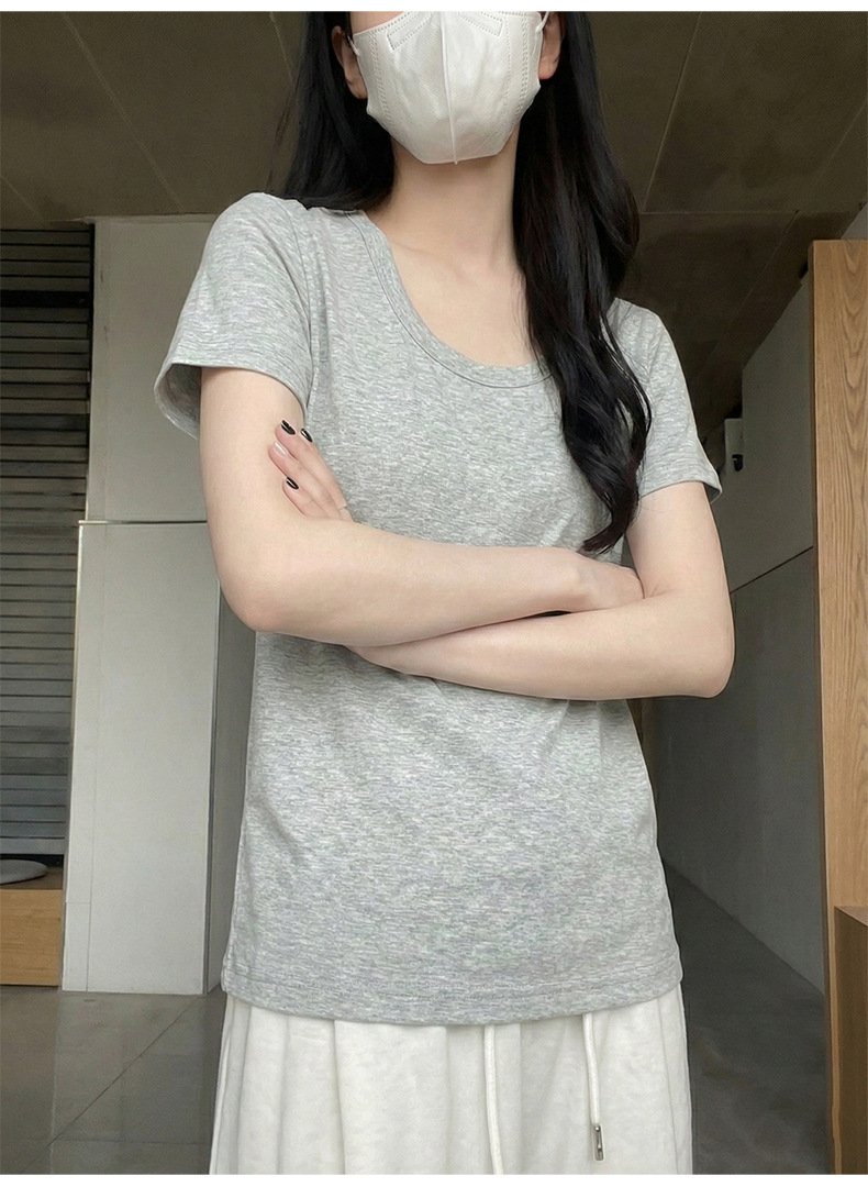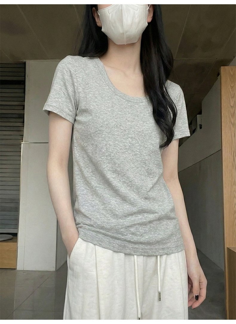 • Spring Korean top, women's short-sleeved T-shirt, pure cotton, loose and slimming, inner base layer, dopamine pink women - Dark gray Dark gray