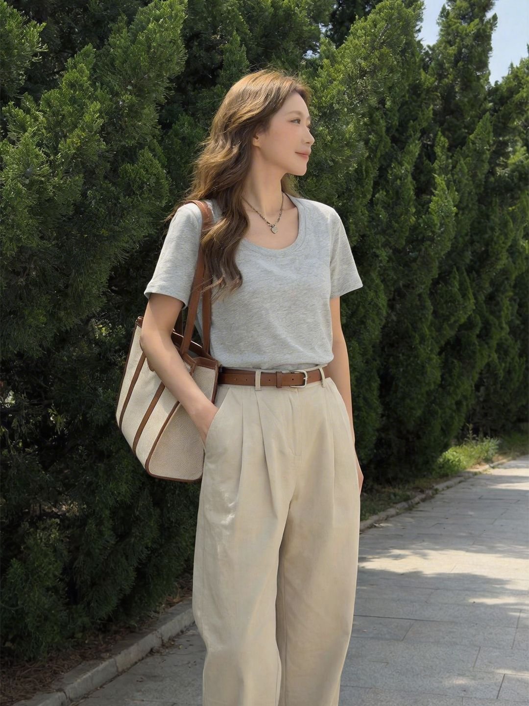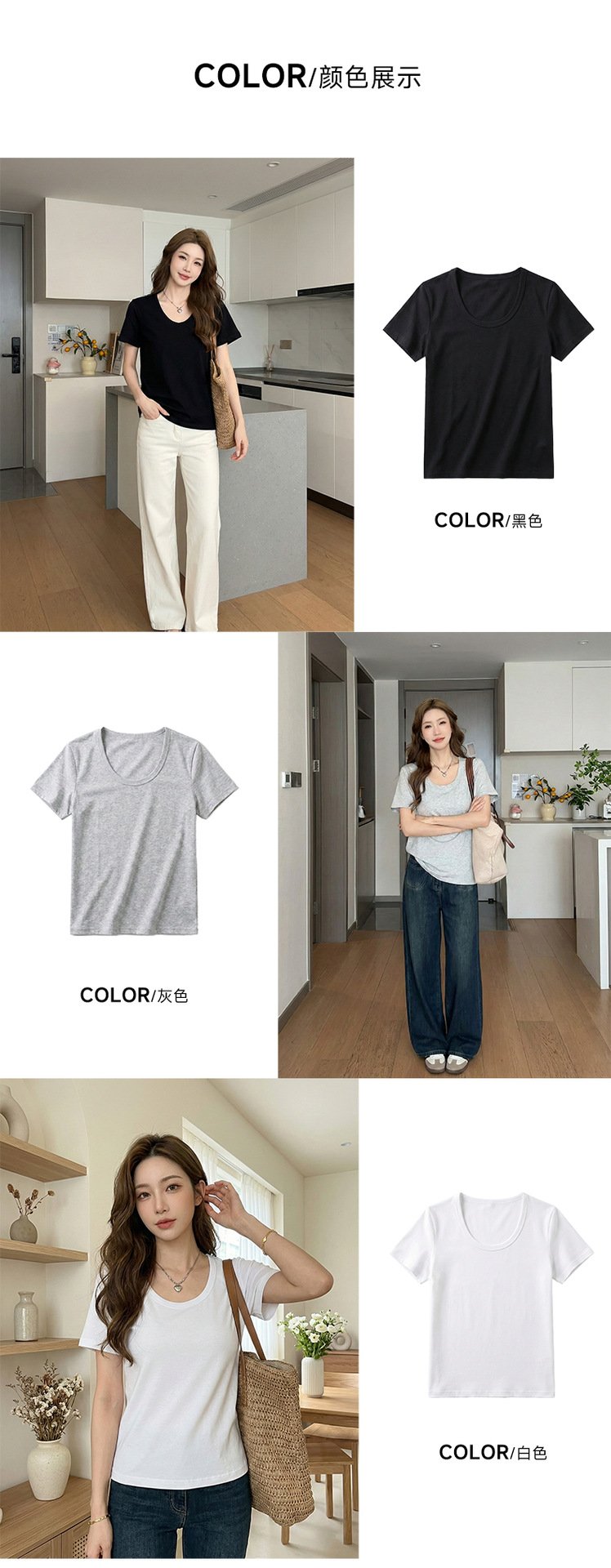 • Classic Crew Neck: A timeless round neckline that pairs effortlessly with necklaces and various outerwear.